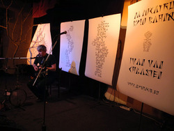 Mimořádně se vydařilo vystoupení v Ukradené galerii v Nitře, kde kulisy doplnil zablácený nákupní vozík, ze dna řeky pod mostem vylovený... scéna jak od Banksyho...ještě jsem musel z bahna v košíku vyndat škeble, aby v galerii nezahynuly. Po vystoupení jsem se ponořil do křovin a lesů Zoboru, kde lesním šerem zářily lilie vzrostlé po prsa.